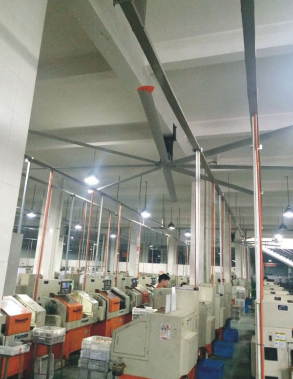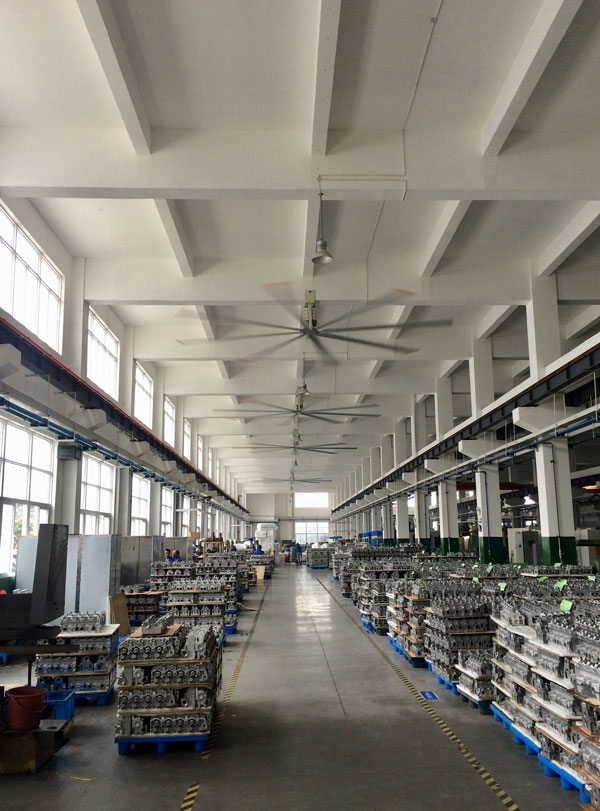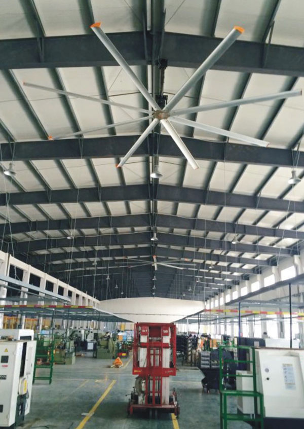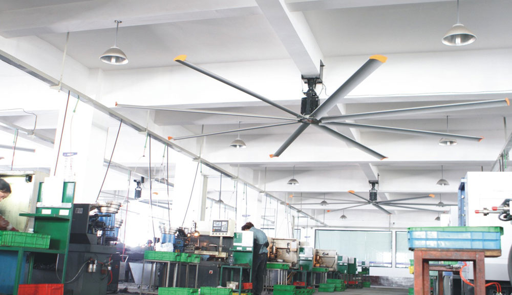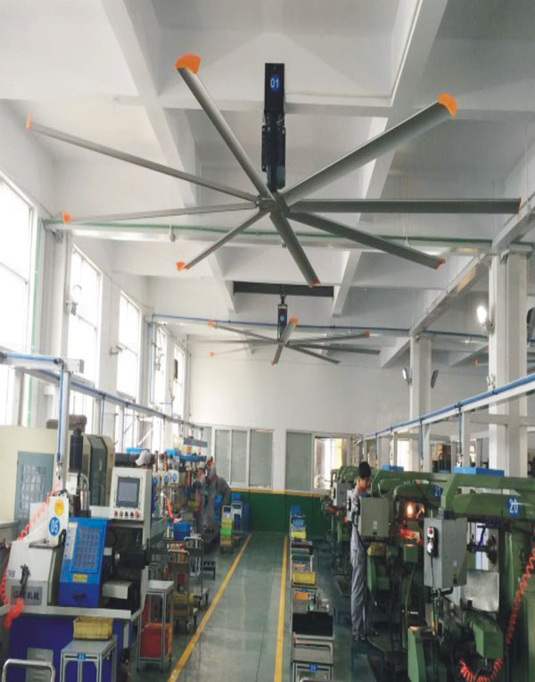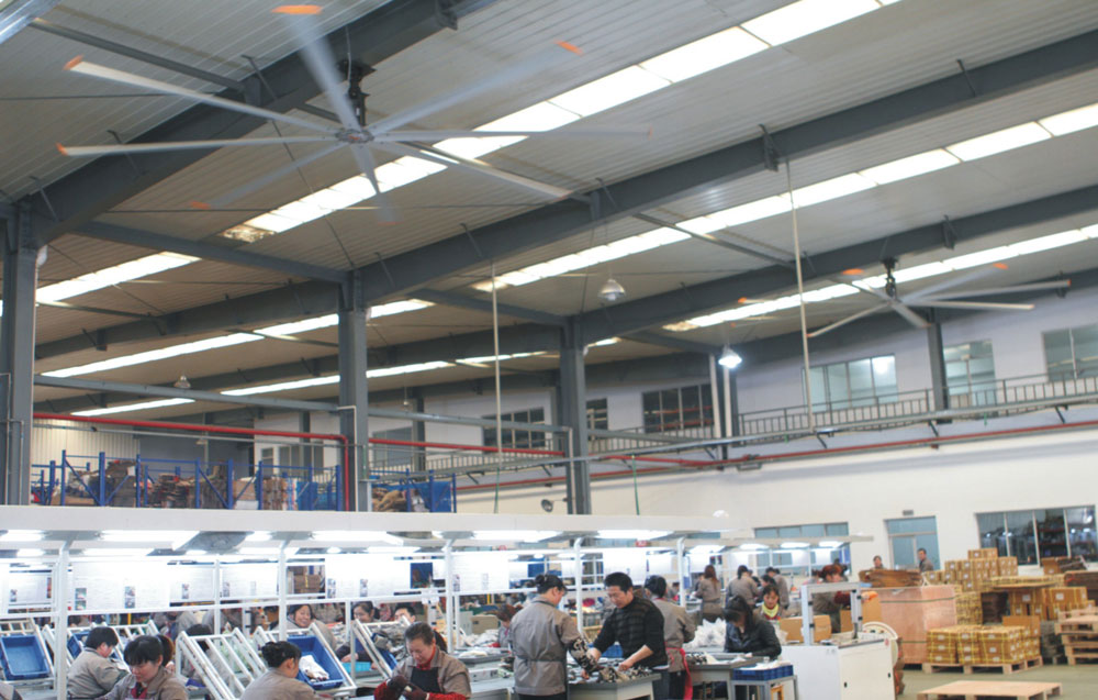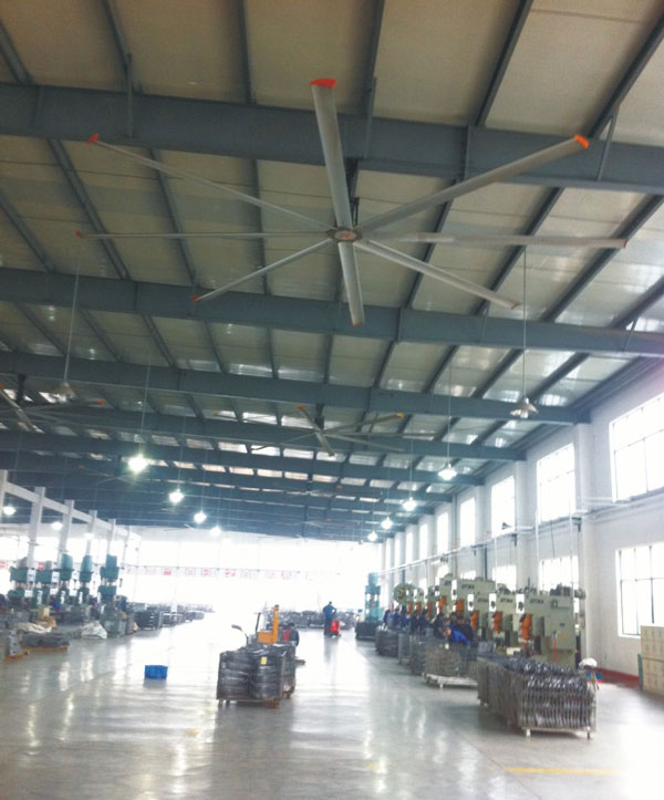 我公司生產(chǎn)的大型工業(yè)吊扇直接懸掛在廠房屋梁下,風(fēng)力柔和,能加快車(chē)間空氣流通,有效降低車(chē)間內(nèi)溫度,改善車(chē)間空氣環(huán)境質(zhì)量,有利于員工的身體健康。