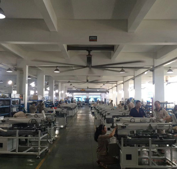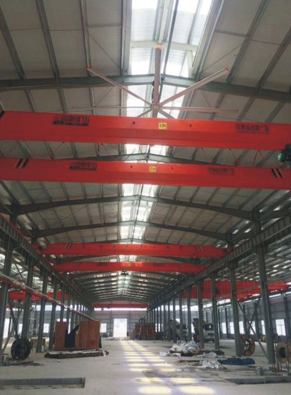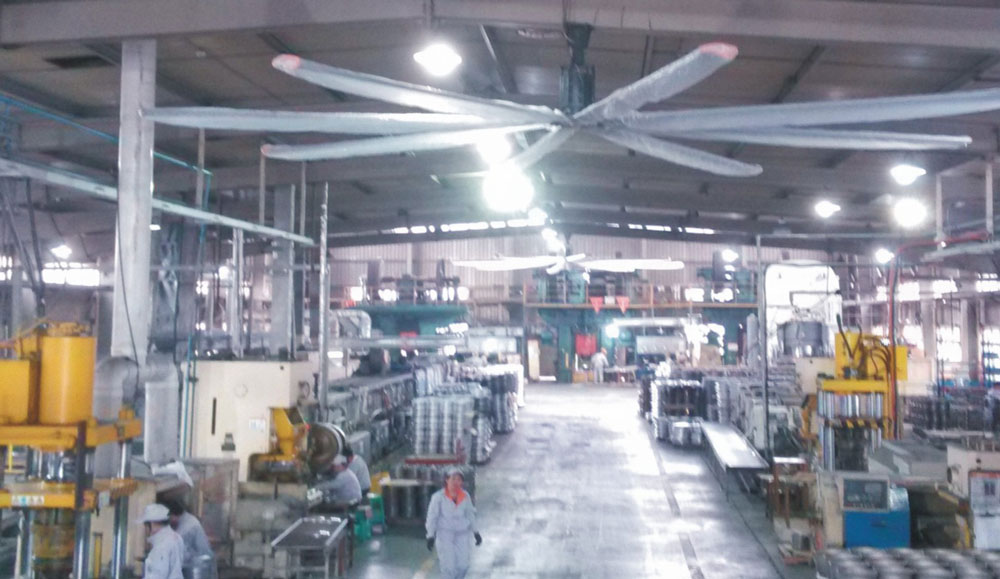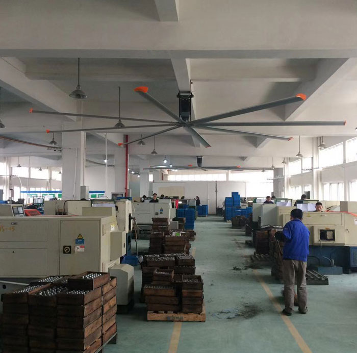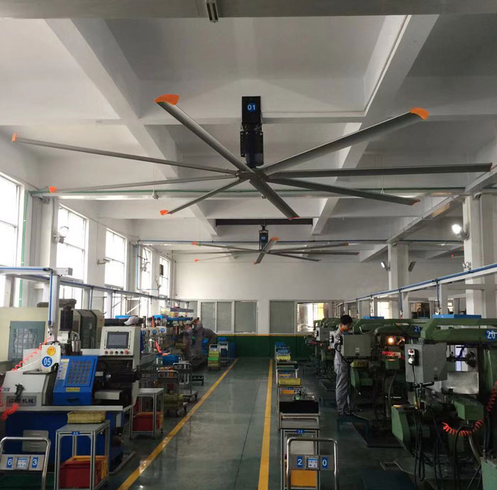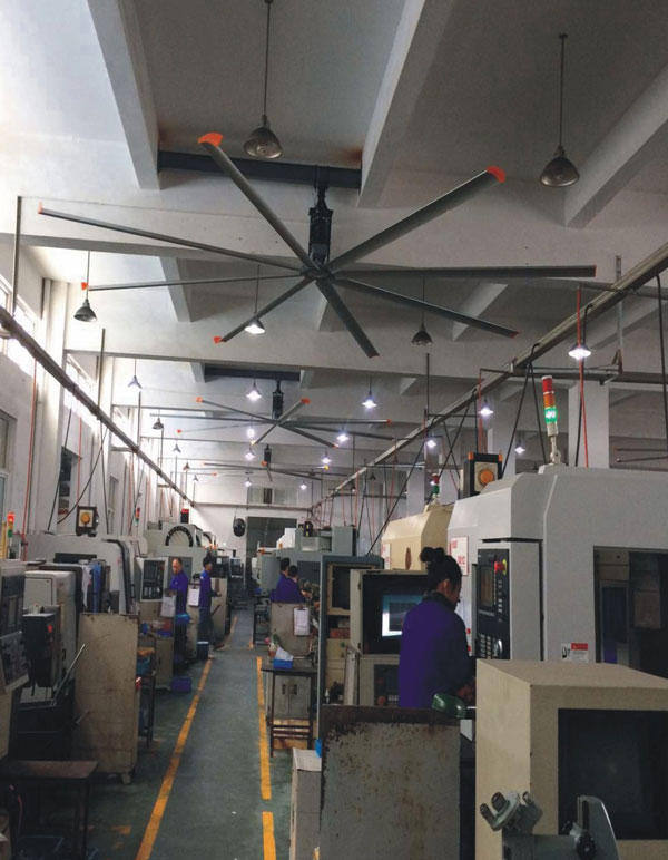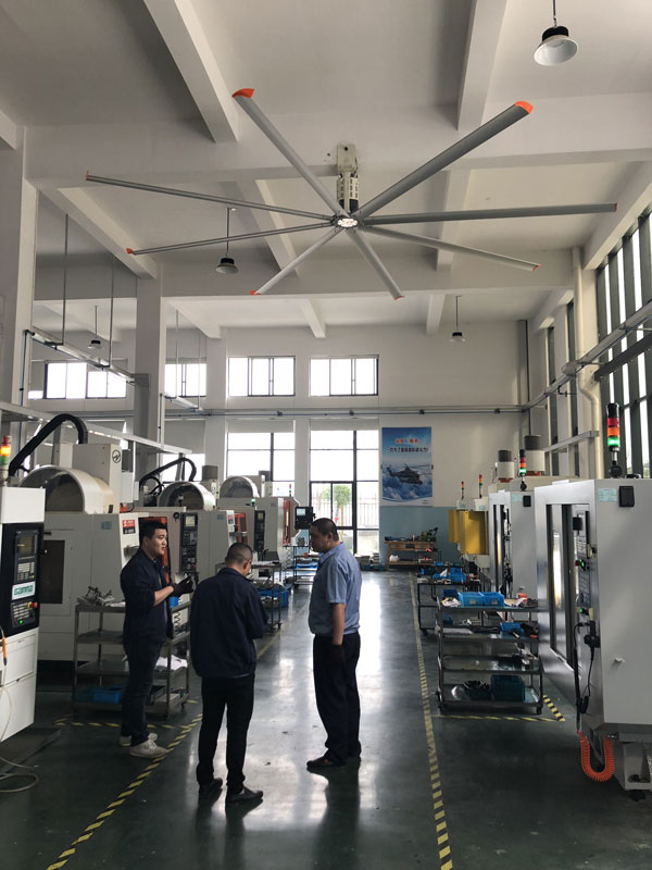 我公司生產(chǎn)的大型工業(yè)吊扇直接懸掛在廠房屋梁下,風(fēng)力柔和,能加快車(chē)間空氣流通,有效降低車(chē)間內(nèi)溫度,改善車(chē)間空氣環(huán)境質(zhì)量,有利于員工的身體健康。